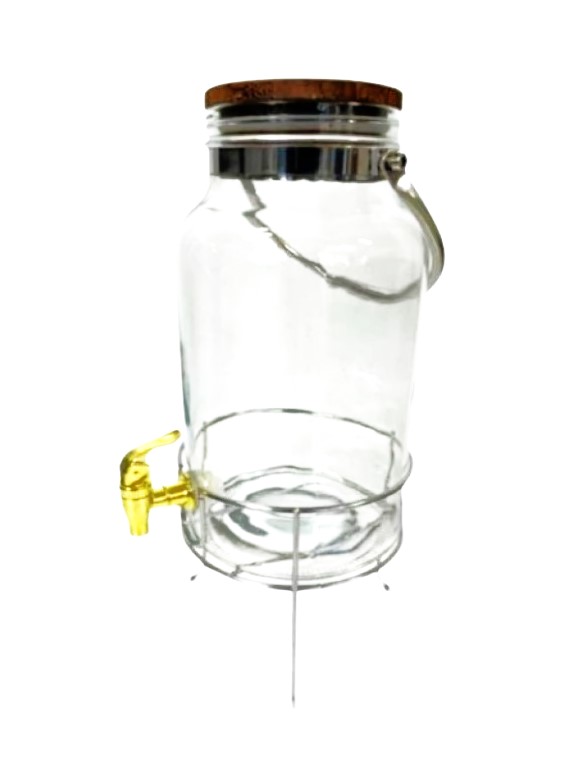 Jooginõu klaasist puidust korgiga, KULDSE kraaniga komplektis metall alus 6L rent